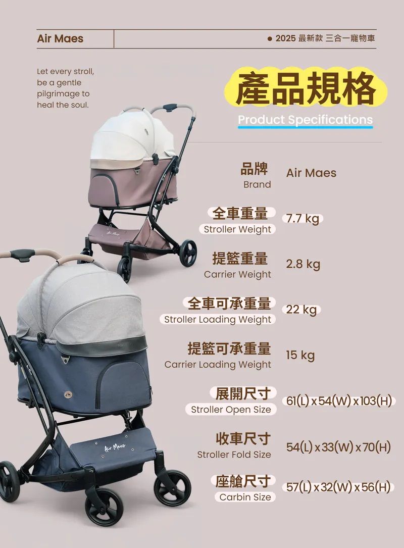 Air Maes - Airy GO 3合1一秒收摺寵物推車 - 摩卡奶油卷