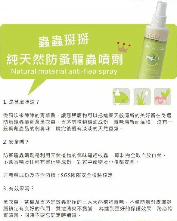 ‧ 化妝品等級精油調製而成,能有效驅蟲蚤、蚊叮