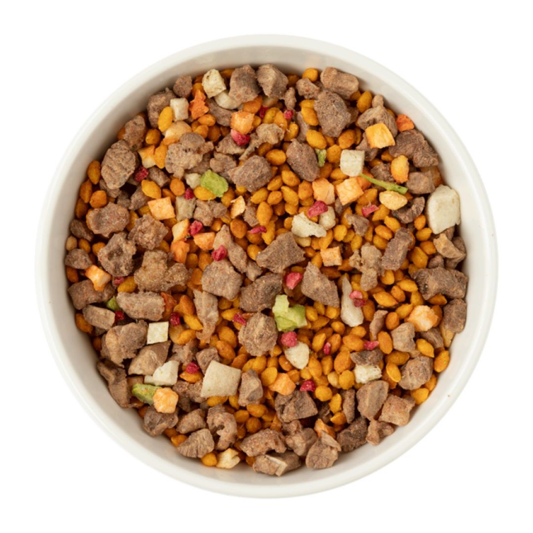 紐澳草飼羊肉、新鮮糙米、新鮮番薯、新鮮馬鈴薯、新鮮胡蘿蔔、新鮮覆盆子、新鮮西蘭花、迷迭香、薑黃粉、牛奶鈣、亞麻仁籽萃取物(Omega-3)、綜合維生素礦物質