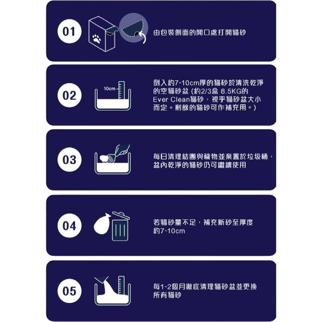 - 吸水能力極強,快速結成團塊,不會粘底。