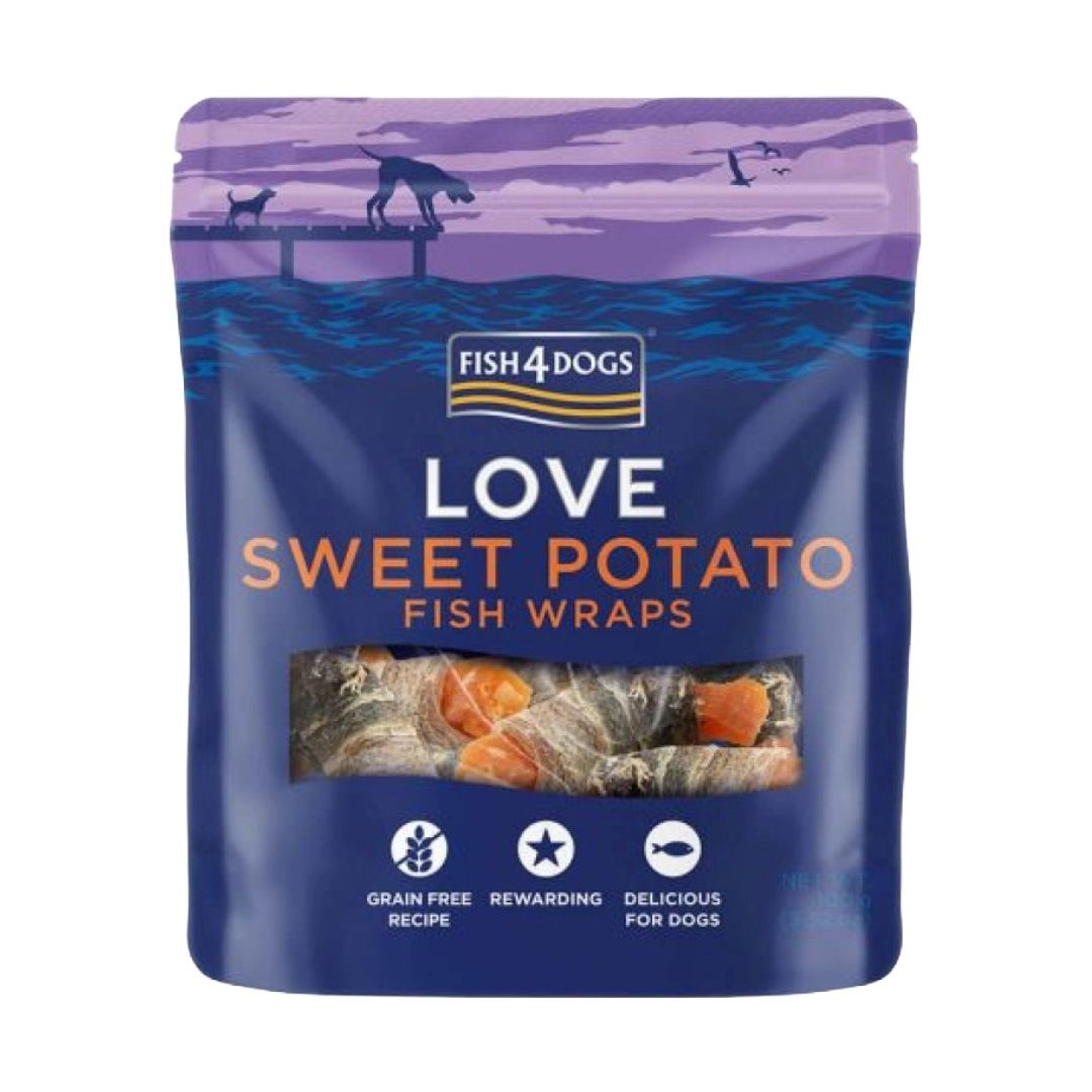 Fish4Dogs 魚皮甜薯卷 100% 純天然,不含添加劑、防腐劑或色素,而且不含穀物,適合容易過敏的狗狗食用。
