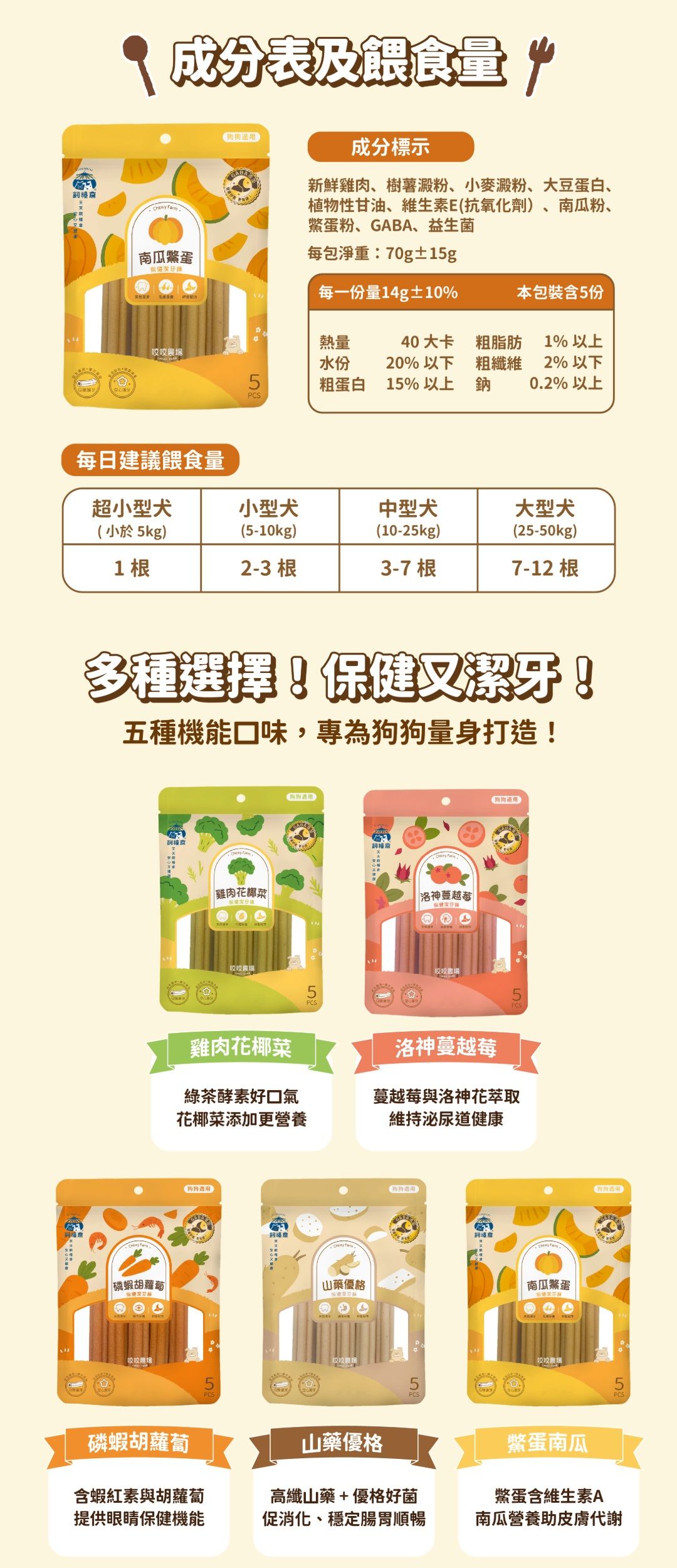 飼糧倉保健潔牙棒 南瓜鱉蛋 (毛膚保健) 5pcs