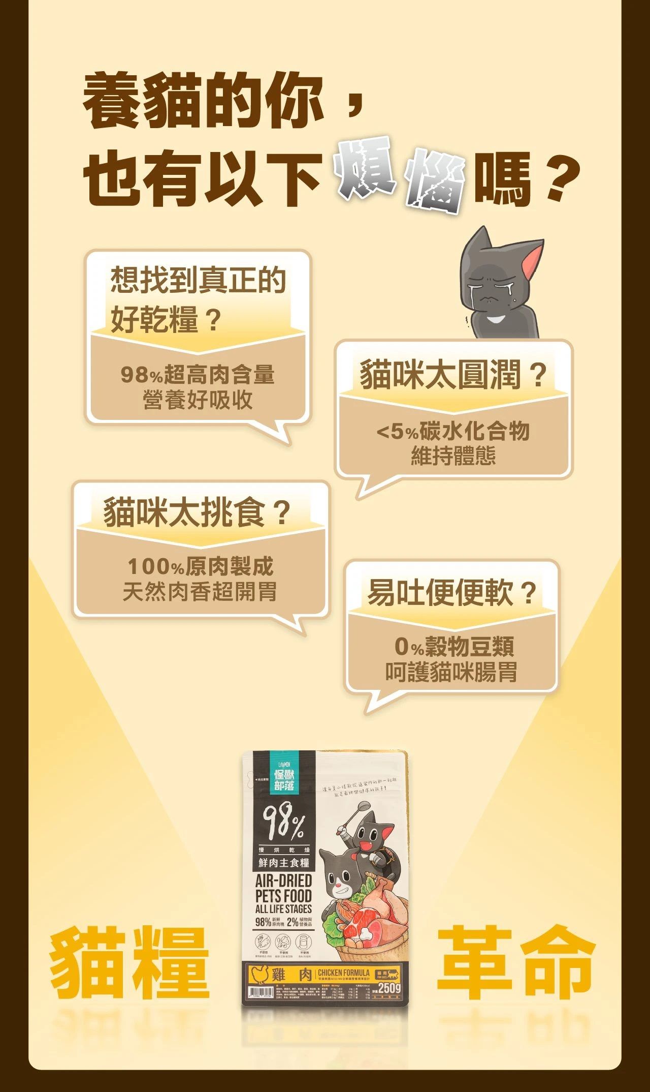 怪獸部落 貓咪鮮肉主食糧 雞肉 250g (小) 新配方