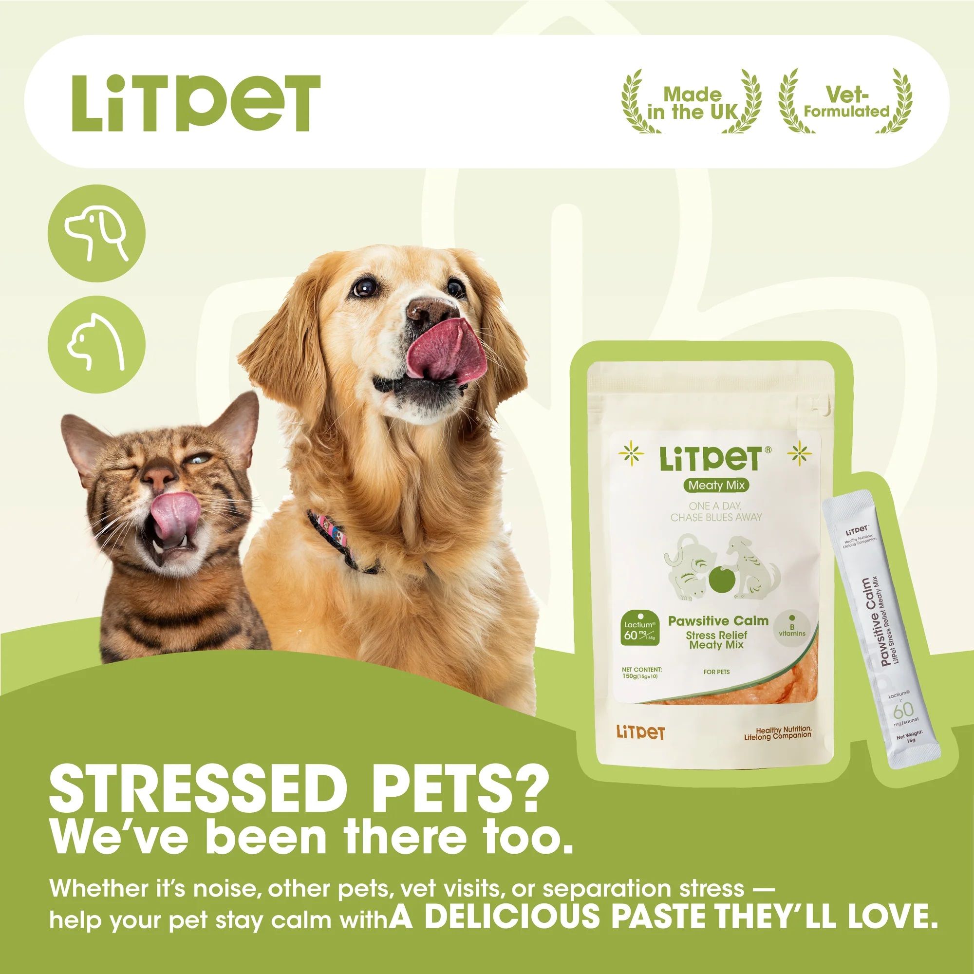 LitPet情緒舒緩營養肉醬適合所有年齡在 3 個月以上的貓和狗。