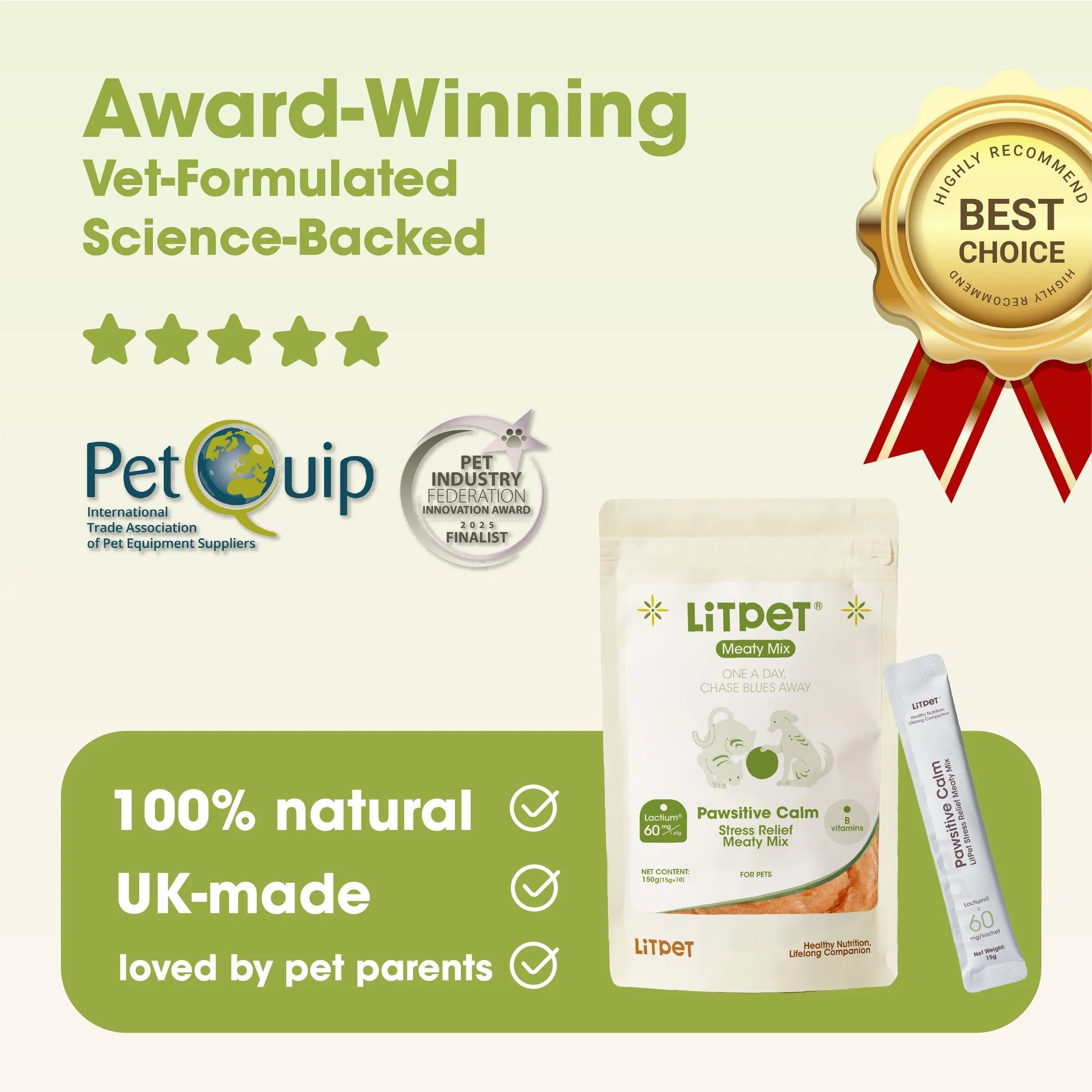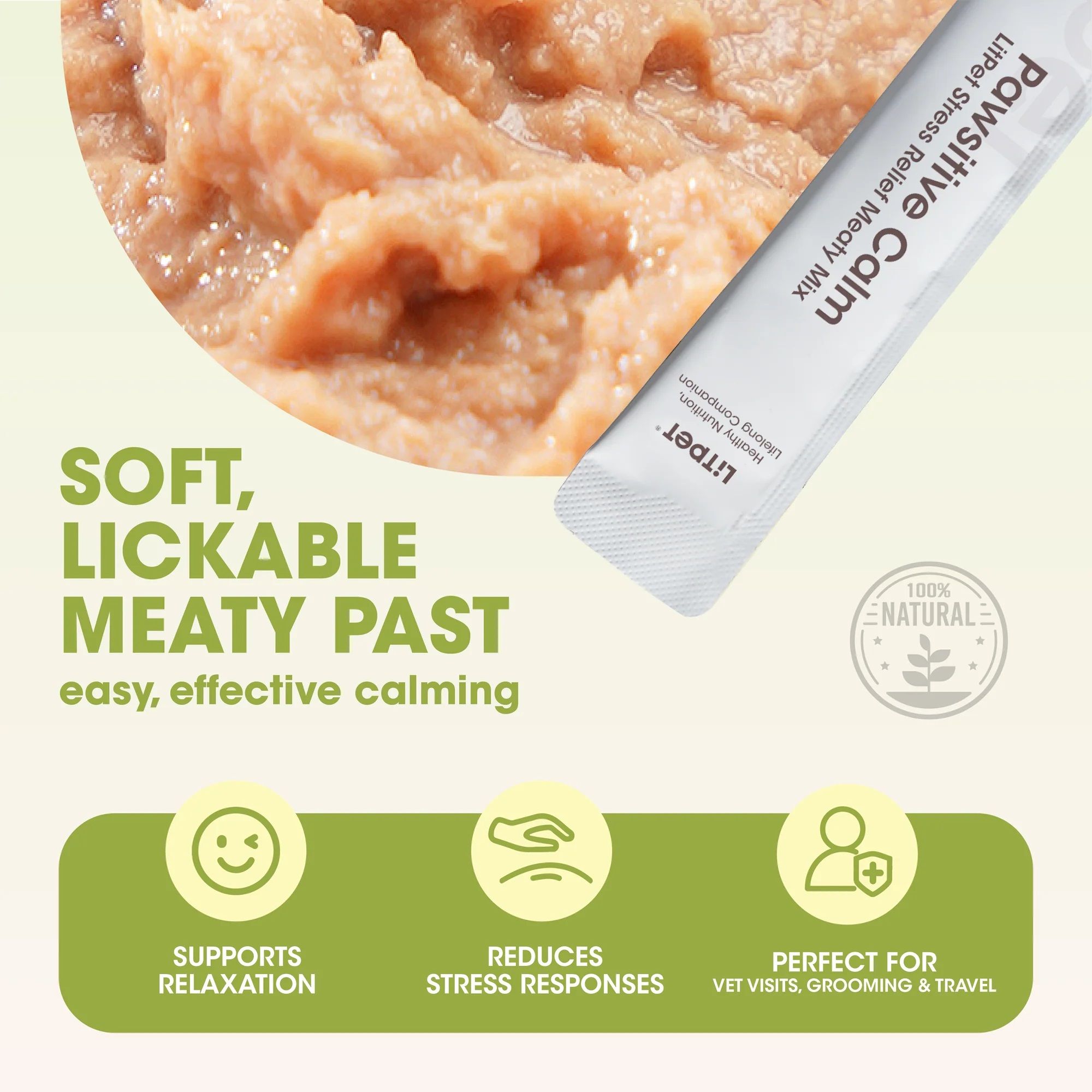 LitPet 情緒舒緩營養肉醬透過溫和且持續的使用來支持情緒平衡與冷靜表現。