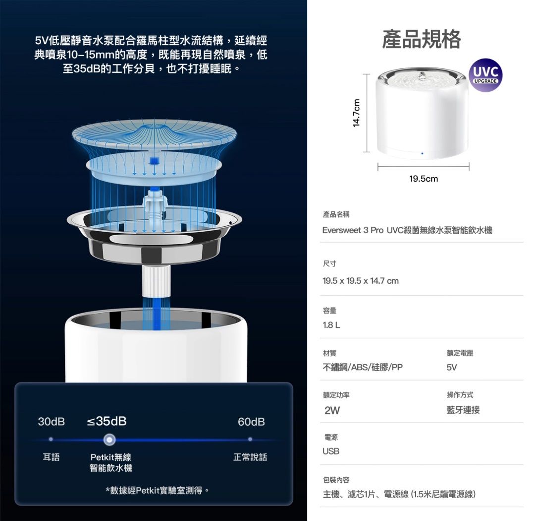 Petkit Eversweet 3 Pro 無線水泵智能飲水機(UV殺菌版)