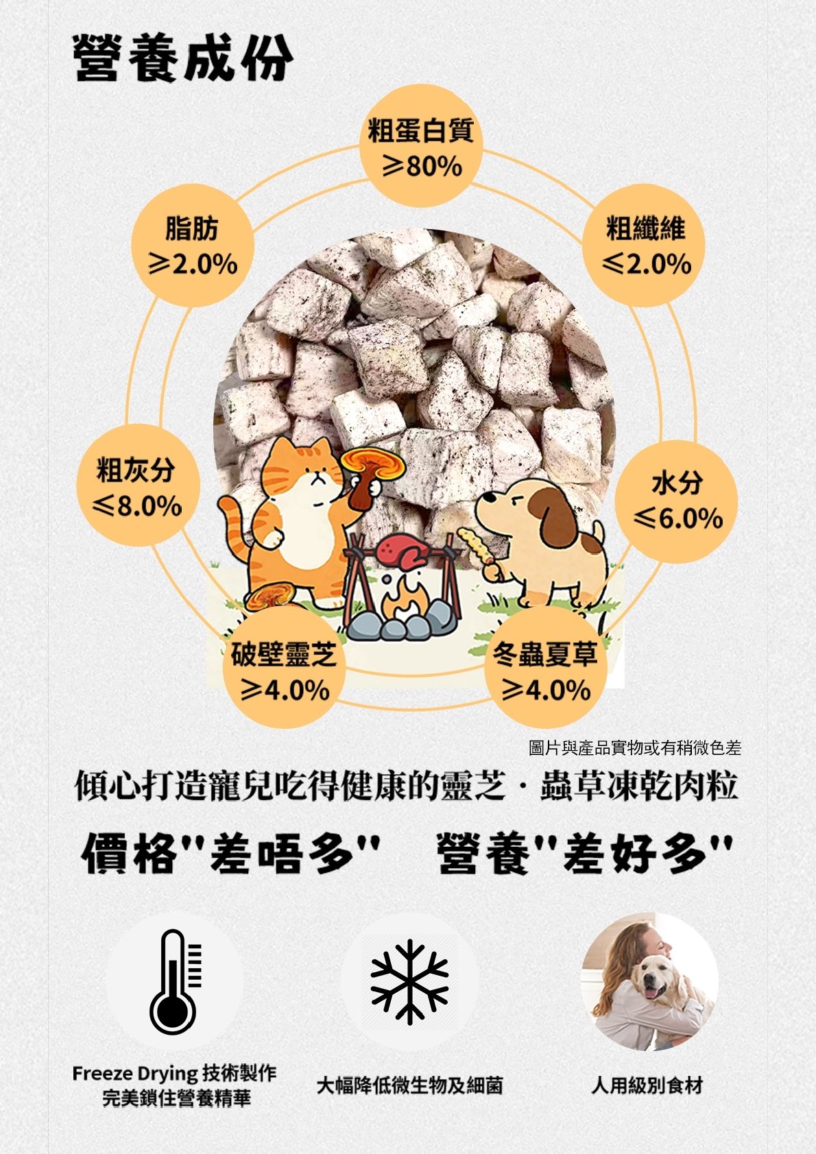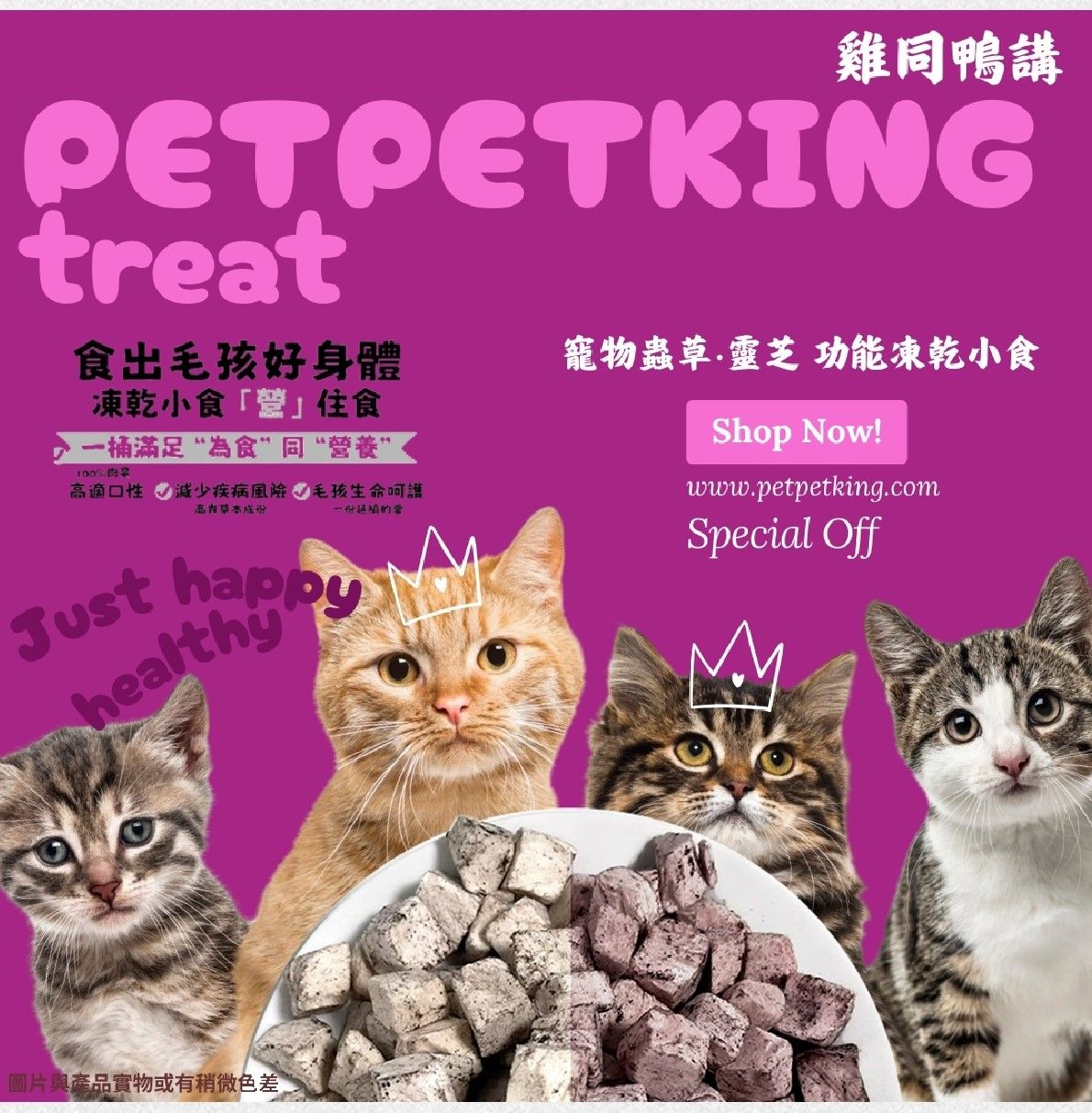 本產品僅供寵物食用。 若您的毛孩有特殊健康狀況,請諮詢獸醫建議。
